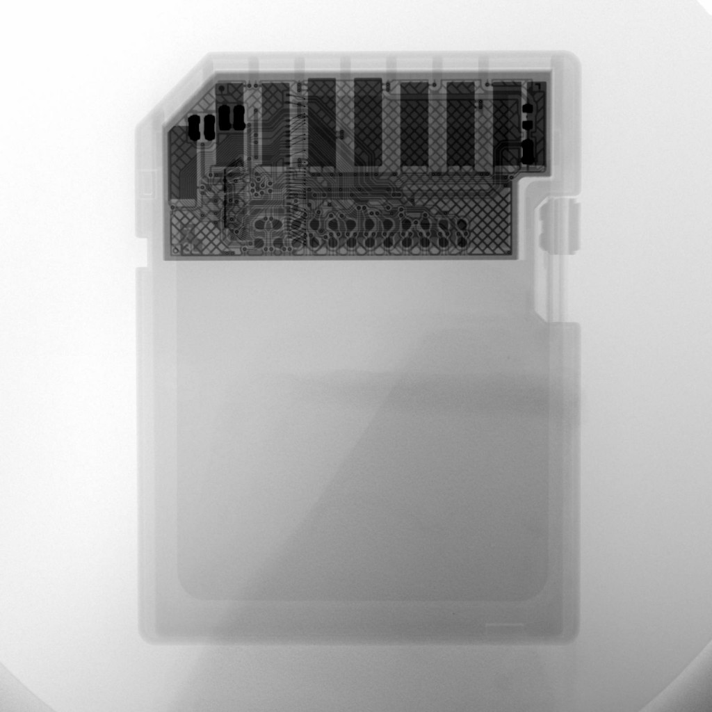 - X-ray image of SD card capture produced by the scintillations on the phosphor screen